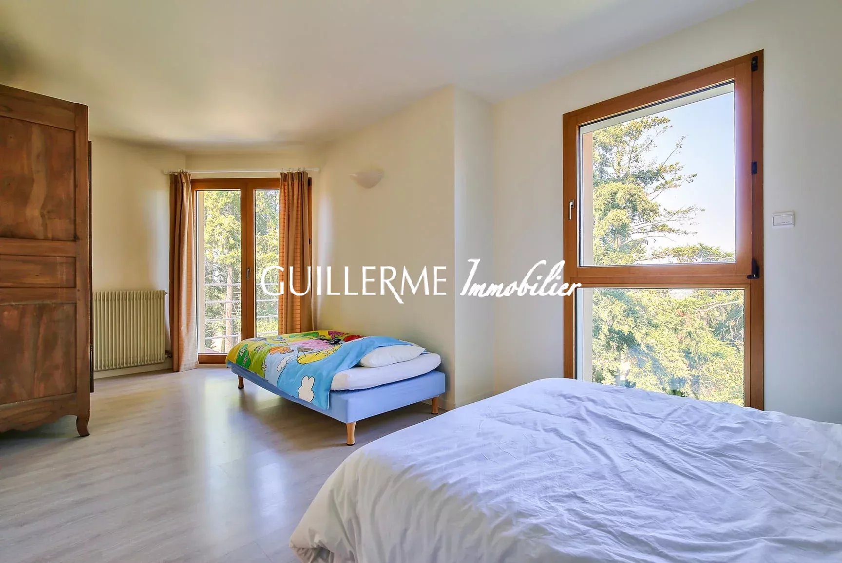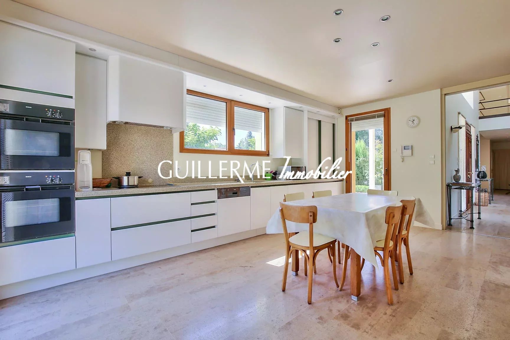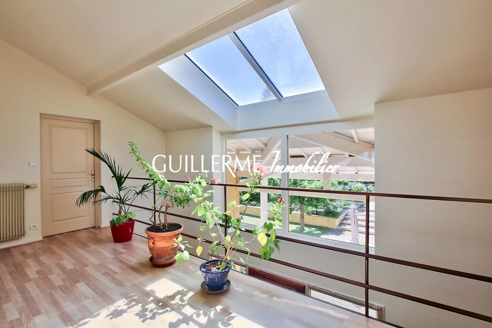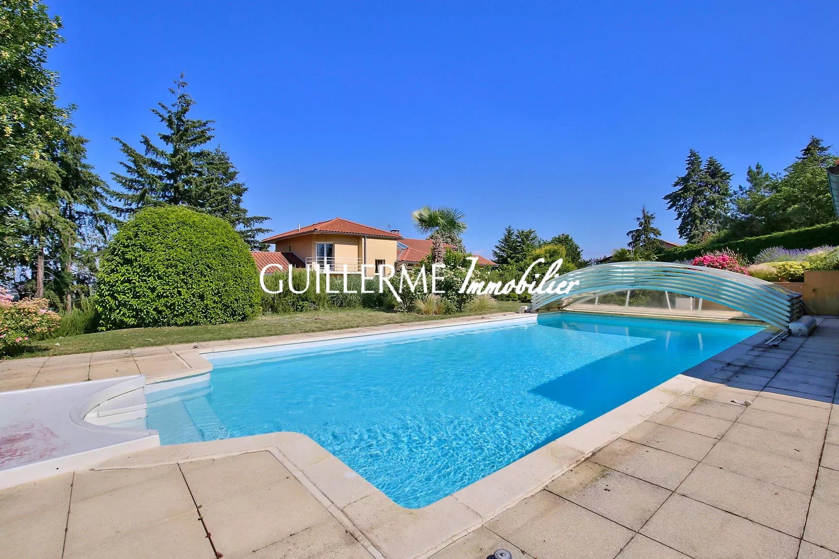 VAUGNERAY non loin du centre, magnifique propriété avec vue sur Lyon de 250m² en parfait état comprenant vastes pièces de vie de 100m² env , 5 chambres dont une suite parentale en rdc, et 4 chambres à l'étage , sous sol, dépendances . Piscine sécurisée de 12.5m par 5.5m grand pool house.Très belles prestations maison impeccable splendide parc paysagé de 9000m² Contact Frédérique GUILLERME 06 17 18 00 23