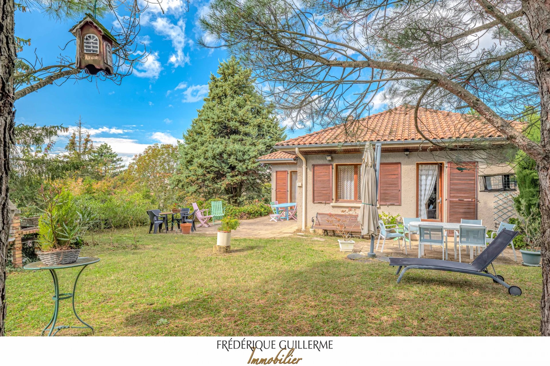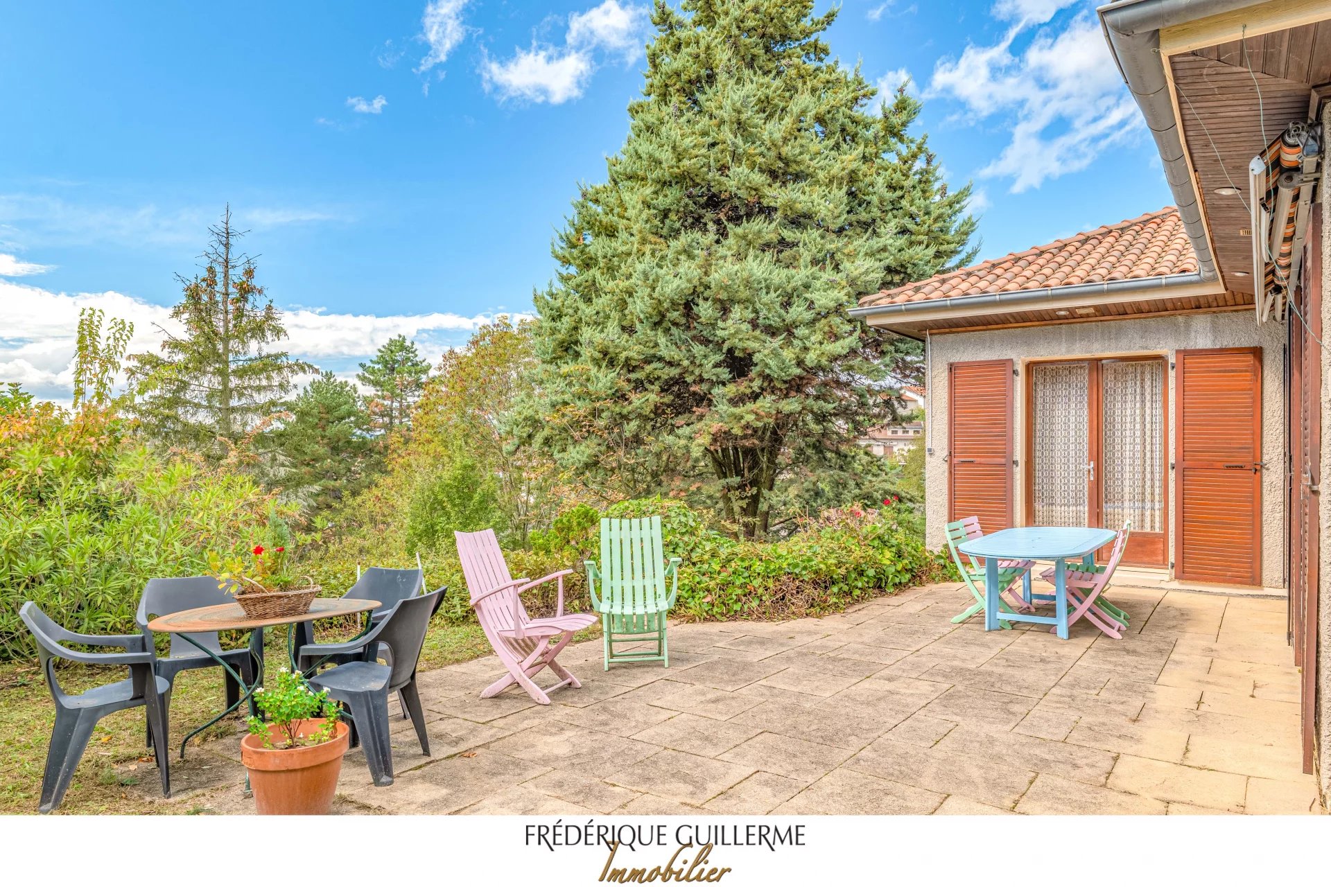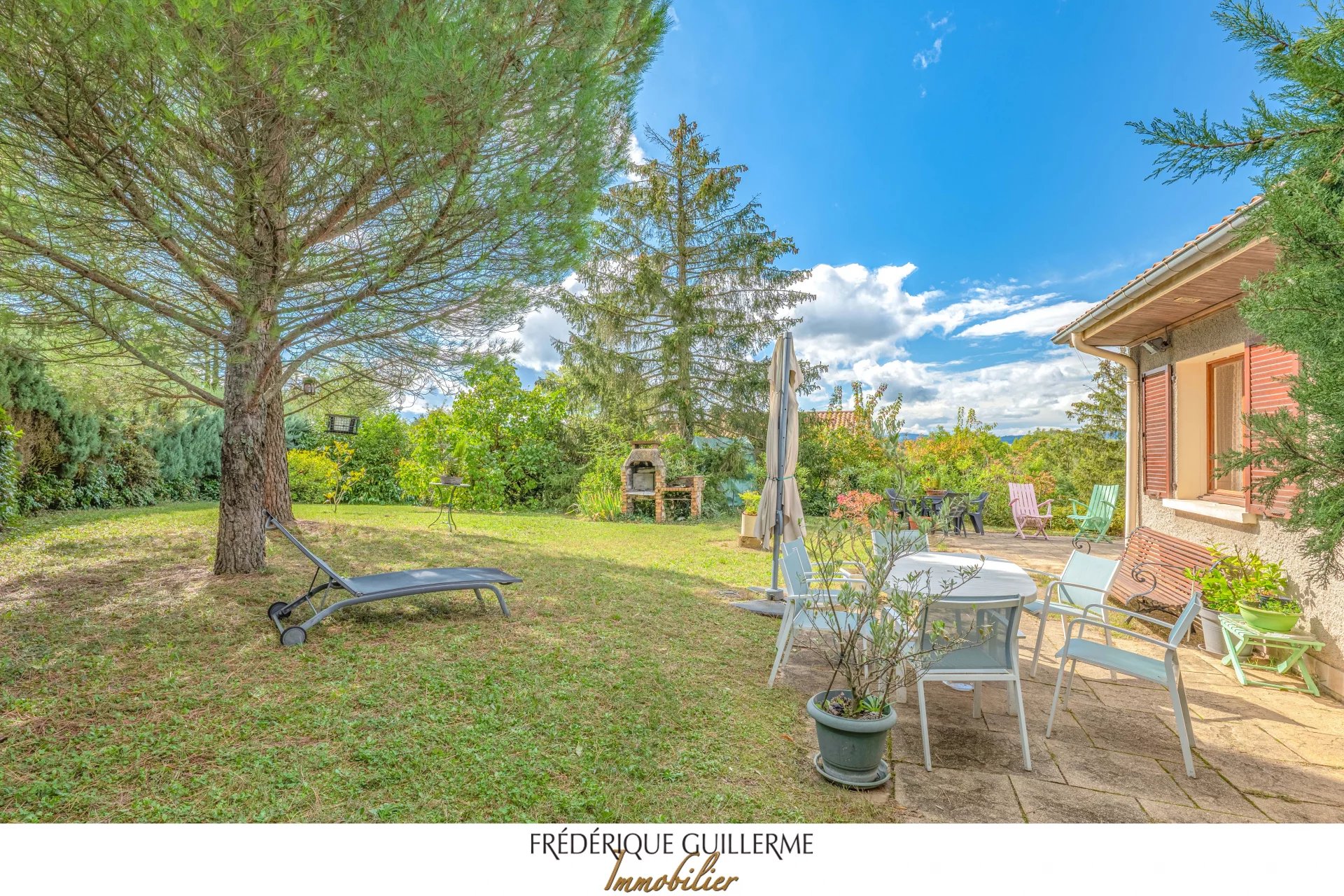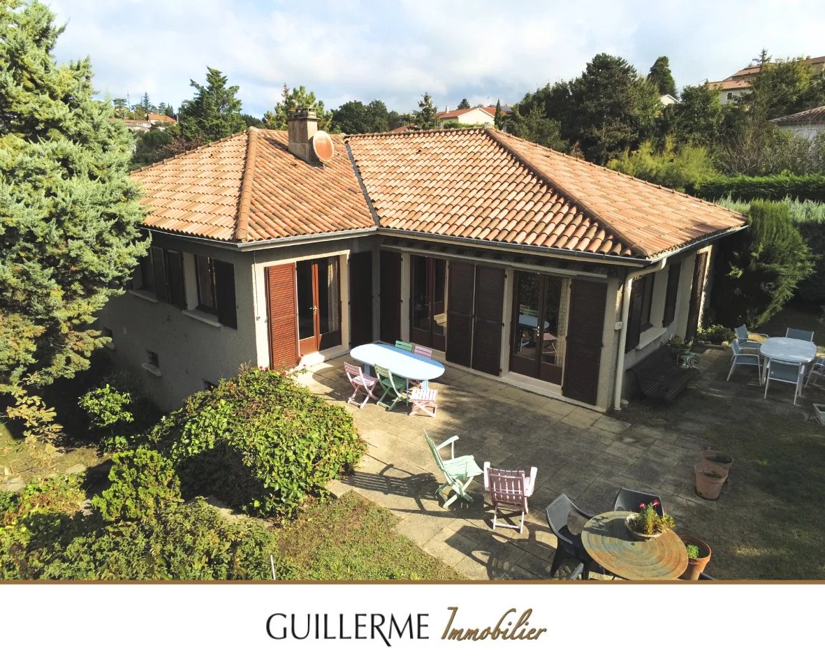 -- Guillerme Immobilier -- Maison de plain-pied Dardilly Le Haut Votre Agence Guillerme Immobilier Dardilly vous propose à la vente cette maison familiale de 130 m2 habitables (271m2 utiles) construite en 1975, à rafraîchir, sur un terrain de 1440 m2 à 350 mètres du centre du village du village de Dardilly le Haut et de ses commerces et transports. Cette maison se compose: Au rez-de-jardin : - une entrée avec placards - une cuisine équipée (possibilité cuisine ouverte sur le salon) - un salon traversant est/ouest donnant sur une terrasse avec une belle vue sur l'Ouest. - une salle à manger - un coin nuit avec 5 chambres et une salle de bains, une salle de douche et un WC indépendant. Au sous-sol : - un grand garage (pour 4 voitures) - un coin buanderie - Une grande pièce servant de billiard (pouvant être utilisée salle de sport ou cinéma) - une cave, une chaufferie - Toilettes Equipements: - Chauffage PAC - Portail automatisé - Terrain entierement clos On aime: - Emplacement exceptionnel a 400 mètres du centre du village de Dardilly le Haut, des ses commerces et bus (Ligne TCL 3 et JD) - Le cadre verdoyant avec vue dégagée Ouest - Le calme - Maison de plain-pied avec 5 chambres - Possibilité Piscine - La quasi absence de murs porteurs (possibilité de créer une grande pièce de vie de 65m2) - La possibilité d'agrandir la maison Contact: Christophe Guillerme o6 03 20 65 74 Agence Guillerme Immobilier 4 Bis Ruelle des Soeurs DARDILLY
