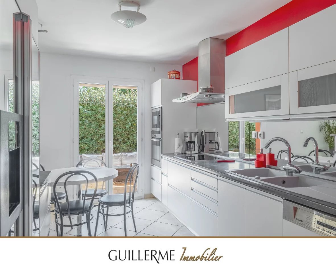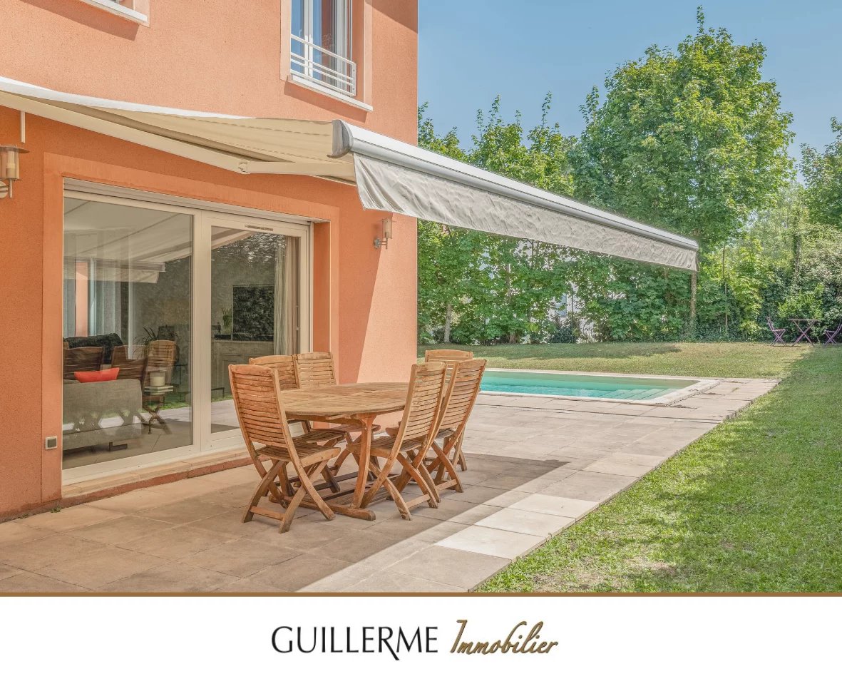 -- Guillerme Immobilier -- Dardilly le bas - Maison 5 chambres Votre Agence Guillerme Immobilier Dardilly vous propose à la vente cette grande maison familiale de 150 m2 habitables dans une copropriété comprenant 5 chambres, une grande pièce de vie avec une cuisine semi-ouverte, donnant sur la terrasse et le jardin. Un très beau terrain paysagé de 900 m2 environ et sa piscine Cette maison se compose: Au rez-de-jardin : - Une entrée - Une grande pièce de vie - Une cuisine semi-ouverte - Une chambre - Une salle d'eau - Un WC vient compléter ce niveaux : - un garage double - une buanderie Au premier étage : Un coin nuit avec - 4 chambres - une salle de bain - Un WC séparé Equipements: - Piscine - Chauffage électrique - poêle à bois On aime: - L'emplacement proche bus, école et village - le calme - Terrain avec piscine - Les 5 chambres Contact: Christophe o6 03 20 65 74 Agence Guillerme Immobilier 4 Bis Ruelle des Soeurs DARDILLY