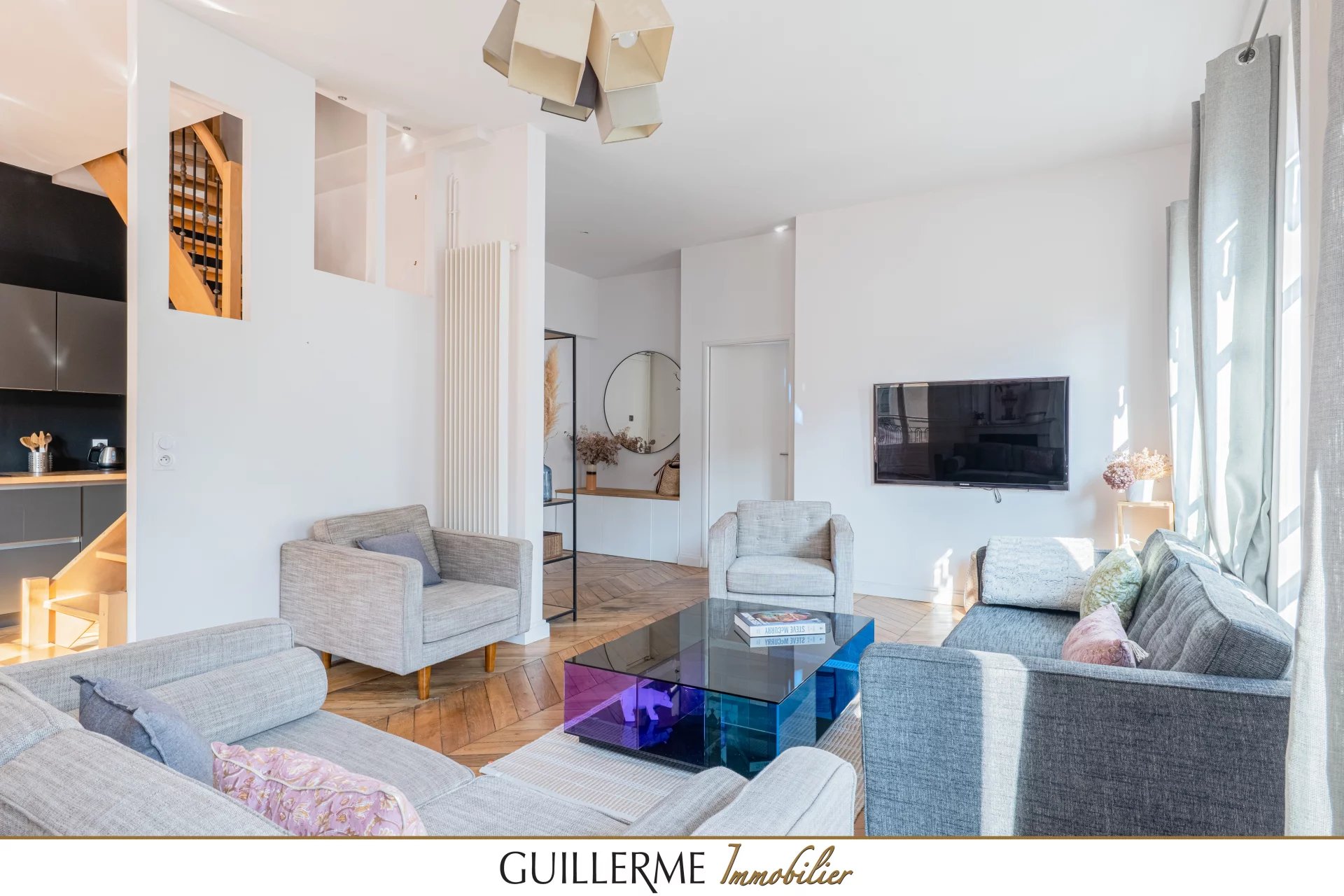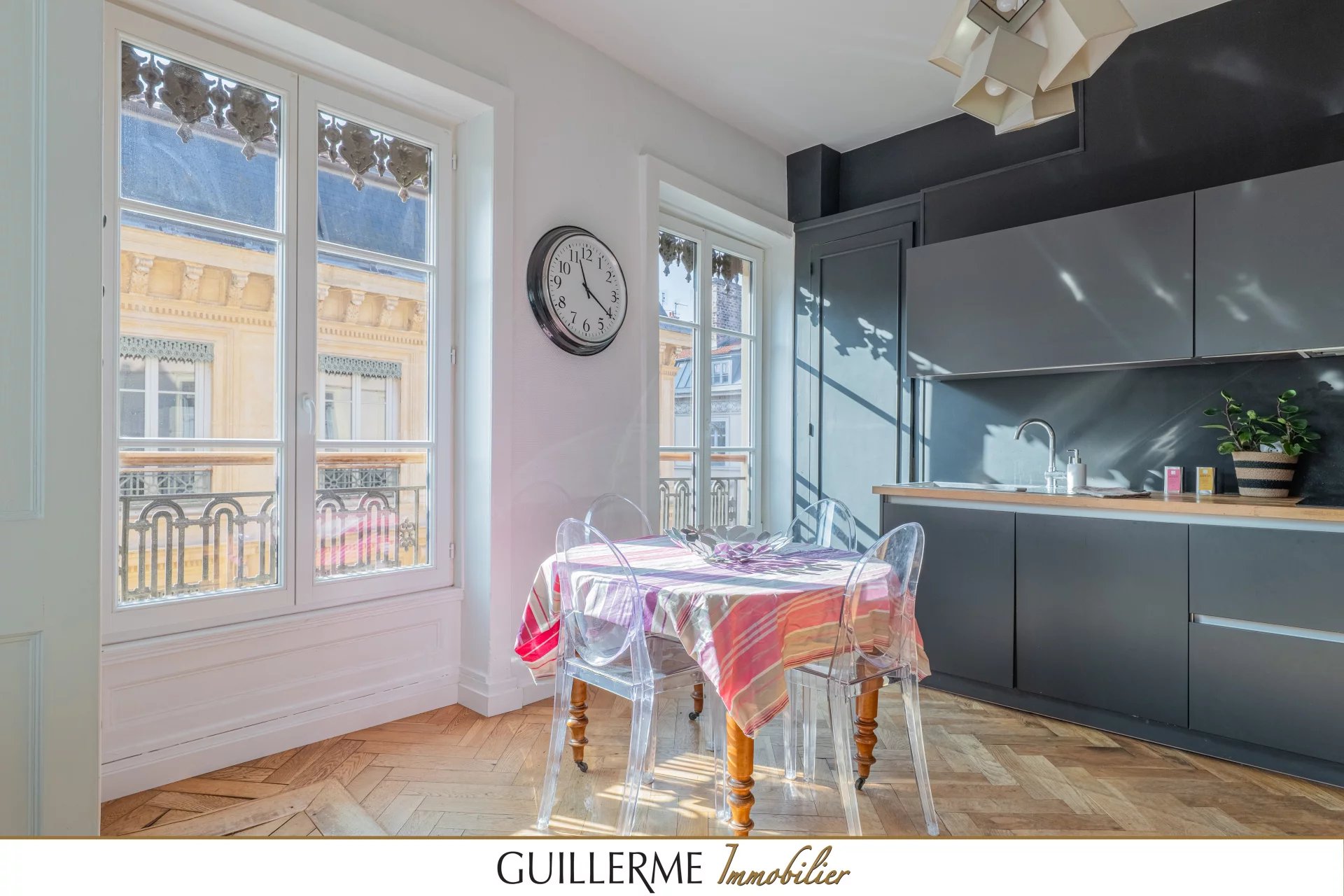 —-GUILLERME immobilier—- Découvrez ce magnifique appartement en duplex de 135 m² utiles (107.15 m² Carrez), idéalement situé au dernier étage d'un immeuble plein de charme à la façade refaite. Son exposition est-sud vous garantit une luminosité exceptionnelle tout au long de la journée. Au 1er niveau, vous profiterez d’une belle pièce de vie de presque 40m2 (entrée, cuisine US, salon/SAM), une suite parentale et des toilettes. Au 2ème étage, dont l’accès se fait par l’escalier intérieur ou par une entrée indépendante, vous apprécierez les 2 autres très grandes chambres, de nombreux rangements, une SDE avec douche italienne et un deuxième WC. Cet appartement comporte 2 entrées distinctes. Vous pouvez à la fois jouir de votre habitation principale et gérer vos locations du niveau supérieur pour un revenu locatif supplémentaire. On aime : - l’atmosphère paisible tout en étant proche des commodités - La sensation d’espace accentuée par les 3m de hauteur sous plafond de la pièce de vie - le cachet de l’appartement avec le très beau parquet chevron et la cheminée d’époque - les 2 entrées distinctes par niveau offrant une indépendance appréciable - les très nombreux rangements Info vérité : pas d’ascenseur dans cet immeuble haussmannien. Que vous soyez une famille à la recherche d'un espace de vie confortable ou un investisseur en quête d'un bien d'exception, cet appartement saura vous séduire. Ne manquez pas cette opportunité rare d'acquérir un bien d'exception au cœur de la ville. Contactez-nous pour organiser une visite ! Stéphanie Thévenon o6 09 25 94 79 Agence Guillerme Immobilier 4 Bis Ruelle des Soeurs 69570 DARDILLY