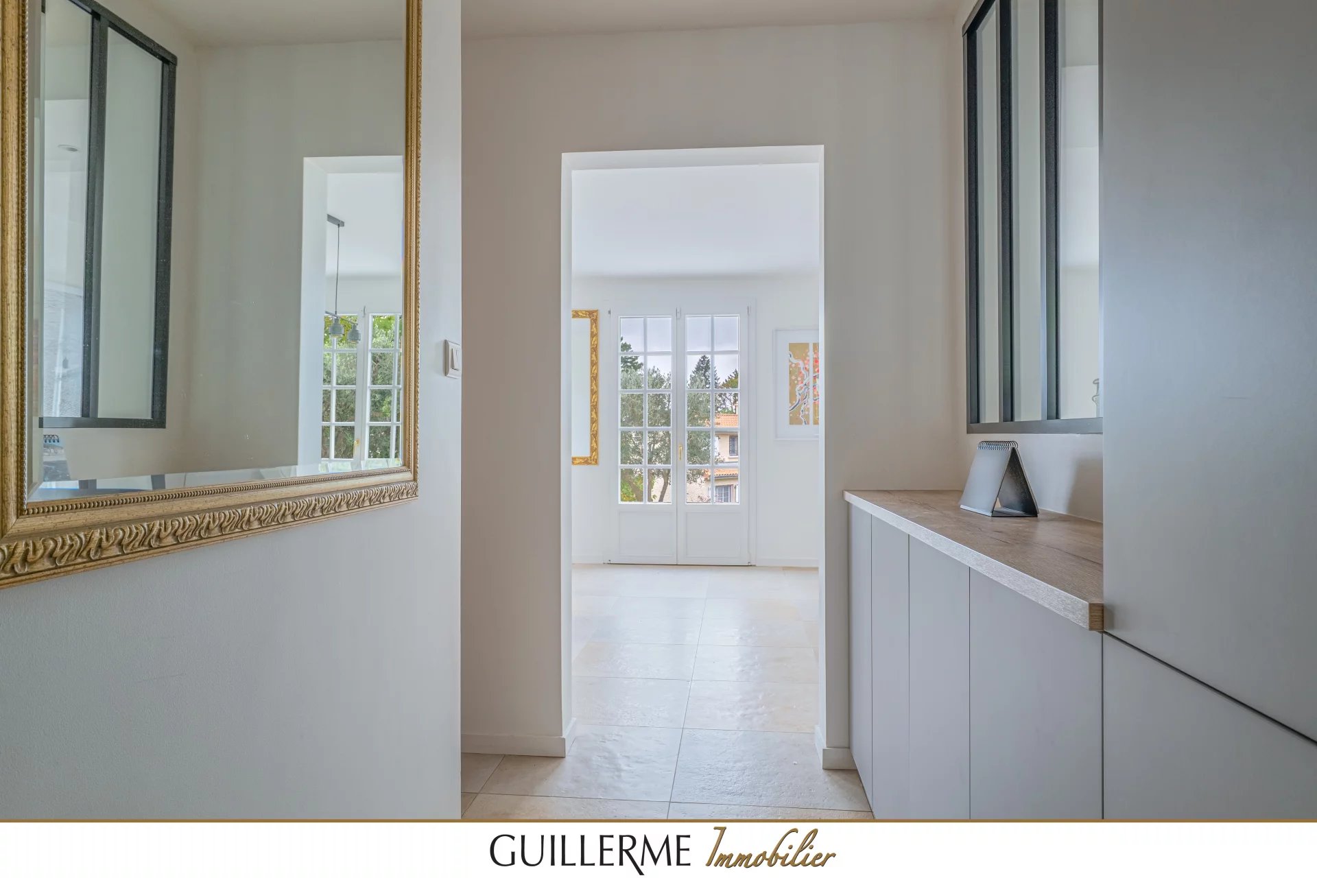 -- Guillerme Immobilier -- Votre agence Guillerme Immobilier vous présente en exclusivité cette charmante maison familiale située sur la commune prisée de Saint-Didier-au-Mont-d’Or, à la limite de Saint-Cyr-au-Mont-d’Or Implantée sur une parcelle de 560 m² environ offrant une vue dégagée, cette maison bénéficie d’un environnement calme et résidentiel, à seulement 12 minutes à pied du centre du village de Saint-Cyr et de ses commerces. Les points forts - Environnement calme et recherché - Intérieur entièrement rénové (cuisine, sols, peintures, pièces d’eau, chaudière) - Quatre chambres dont une suite parentale de plain-pied - Sous-sol complet avec salle de jeux et accès intérieur/extérieur - Terrasse plein sud rénovée et grand garage Caractéristiques principales - Surface habitable : 134 m² Carrez - Surface utile : 255 m² (incluant sous-sol, salle de jeux et garage) - Terrain : 560 m² Description du bien Rez-de-jardin - Entrée avec rangements sur mesure - Grande pièce de vie de plus de 40 m² ouvrant sur une terrasse plein sud récemment rénovée - Cuisine ouverte et équipée - Suite parentale avec salle de bains - Toilettes suspendus - Accès direct au garage de plus de 30 m² - Accès au sous-sol et à la salle de jeux Étage - Espace bureau idéal pour le télétravail - Trois chambres indépendantes - Salle d’eau moderne Cette maison séduit par son excellent état général, son agencement fonctionnel et sa luminosité. Un bien rare sur le secteur, prêt à accueillir votre famille sans aucun travaux à prévoir. Localisation Située sur la commune de Saint-Didier-au-Mont-d’Or, à la limite de Saint-Cyr-au-Mont-d’Or, la maison profite d’une situation privilégiée à proximité des commerces, des écoles et des transports. Contact: Christophe Guillerme o6 03 20 65 74 Agence Guillerme Immobilier 4 bis, Ruelle des Sœurs 69570 Dardilly